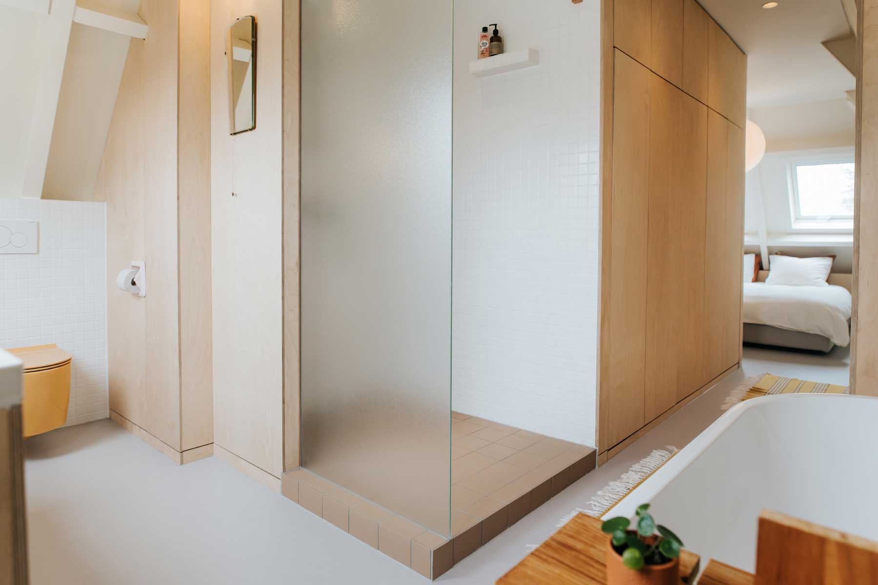 Zolderverbouwing: lichte slaapkamer met badkamer