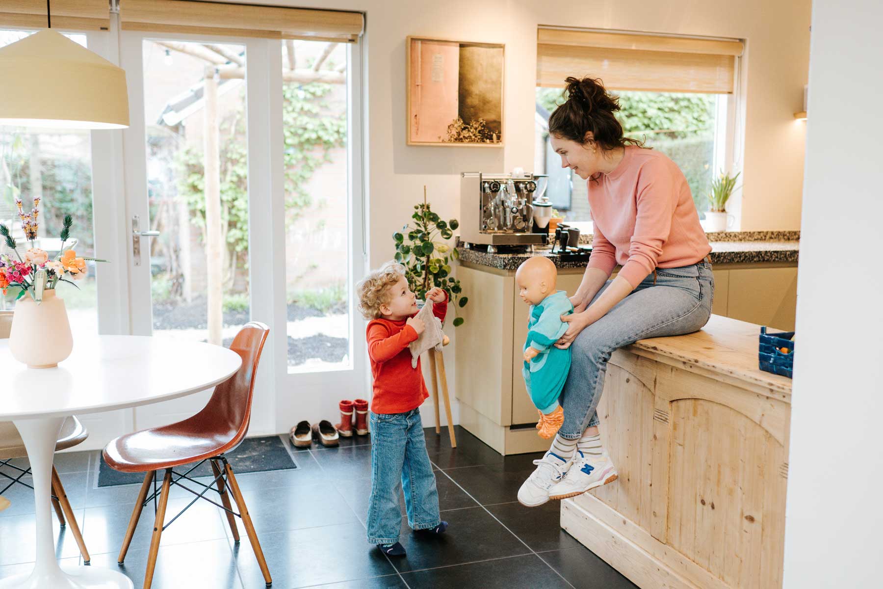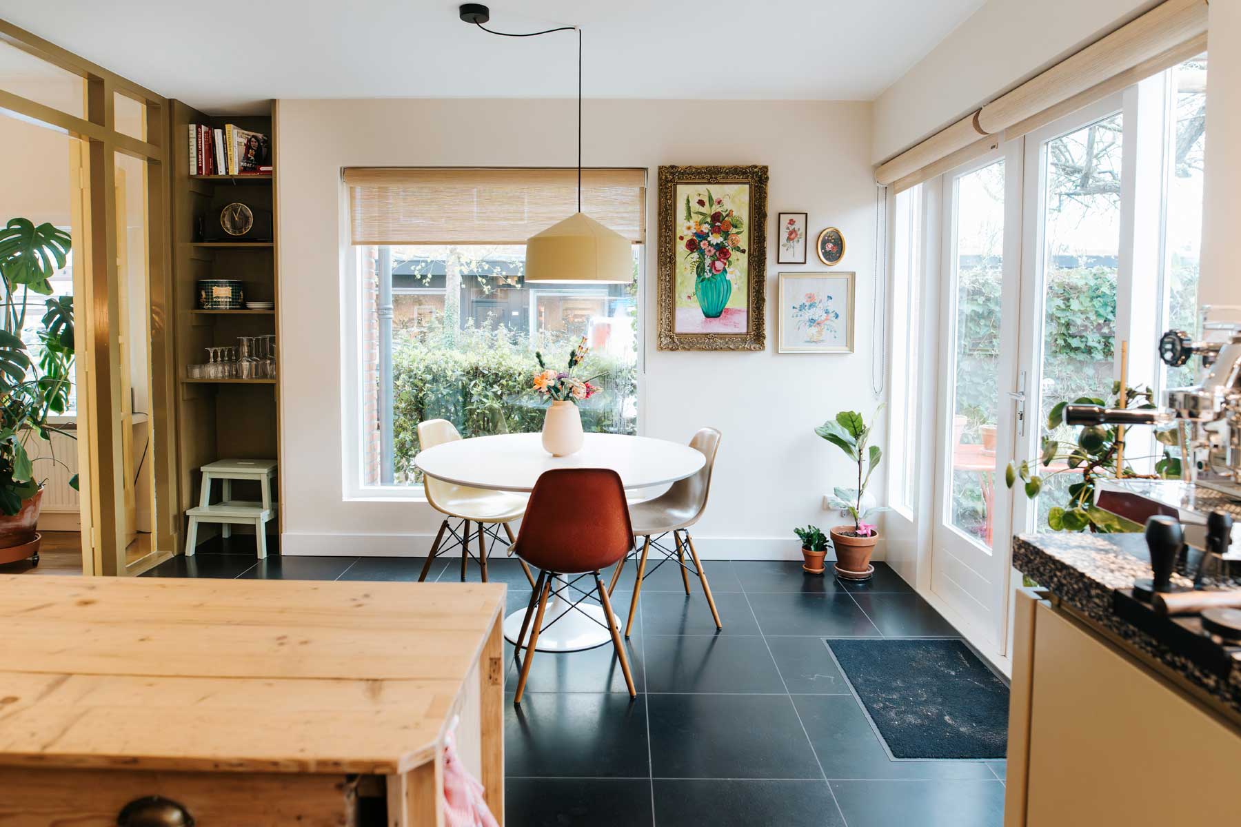 Voor een leuk stel en hun dochter mocht ik de basis neerzetten voor de kleuren op de wanden, de inrichting en verlichting. Het resultaat: “Een hele fijne sfeer door de goede keuze in verf en behang”, aldus de bewoners.